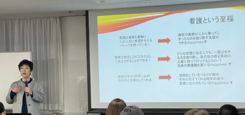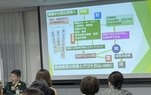 そして、看護の経験を語り合うことは看護の魅力を深め、それを意識して言語化することで経験知になっていくこと、その取り組みが技術の本質を形づくることにつながる、とのお話がありました。